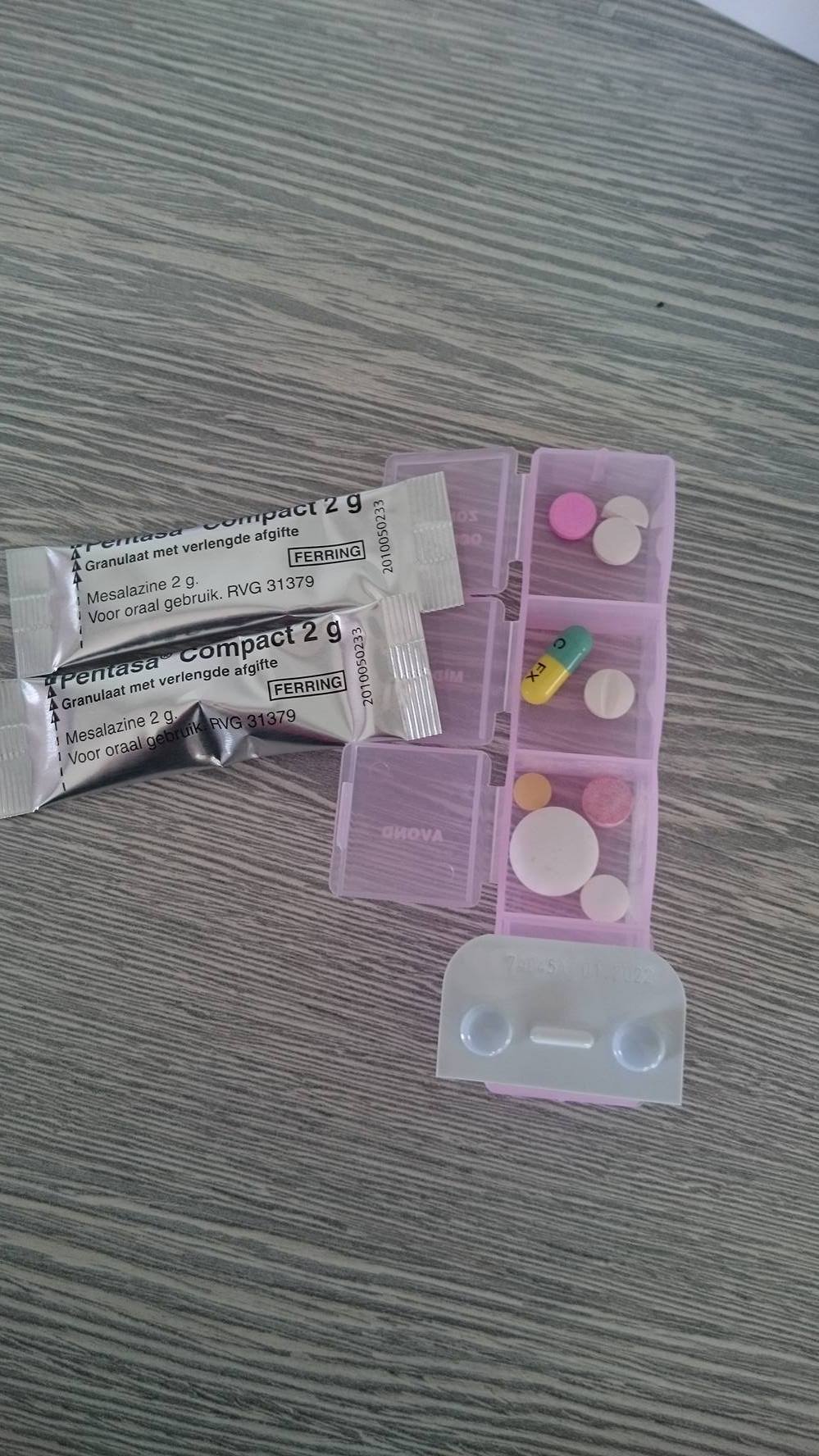 Ik zou niet zo'n moeite hebben met al die pilletjes, als ze maar wat deden.. Helaas werkt tot op heden geen enkel medicijn wat me wordt gegeven en dat is aardig frustrerend aan het worden. Ik voel me een ziek oud vrouwtje als ik mijn medicijn doosje aan het vullen ben voor de aankomende week, my god wat een hoop! Het is niet alsof ik me er beter door voel, ik heb juist vooral last van bijwerkingen maar heb niet het voordeel dat je zou moeten krijgen! Ik gebruik het elke dag, ookal wil ik soms best overslaan want ja.. 'het doet toch niks' Maar medicatietrouw zijn is ontzettend belangrijk, ookal doet het naar mijn idee niks, je mag nooit zomaar stoppen!